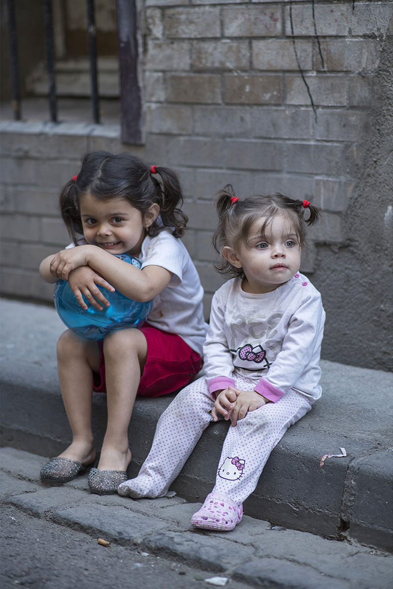 Deux petites gitanes dans le quartier Saint-Jacques de Perpignan.
