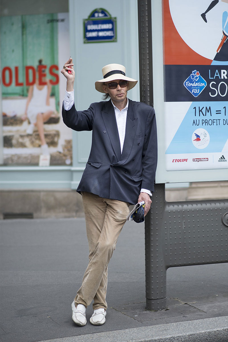 Un monsieur élégant qui parle tout seul. J’y vais !