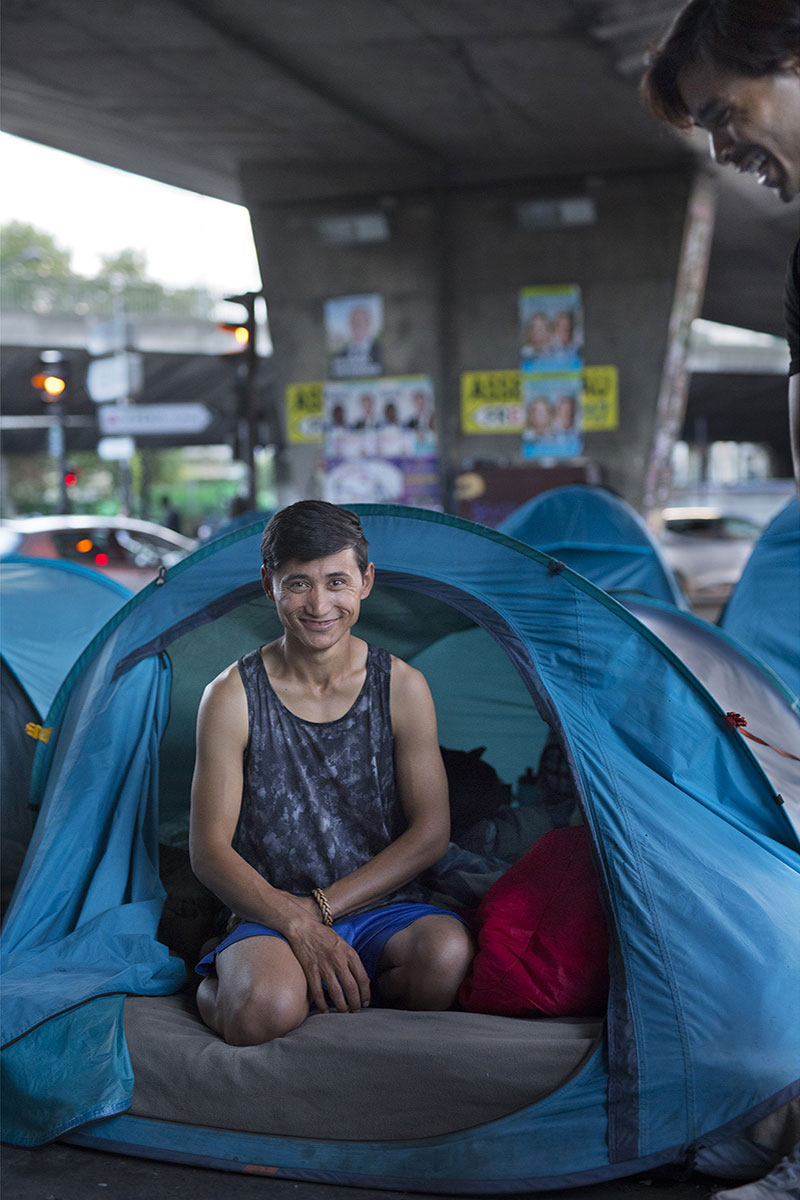 Tout à l’heure, sous un échangeur de la Porte de la Chapelle.