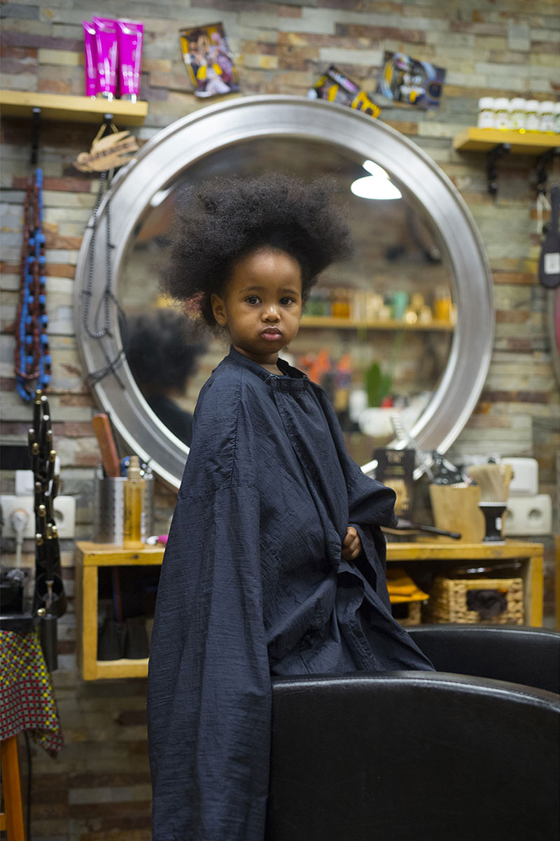 Hier après-midi, dans le salon de coiffure de mon amie Djenaba.